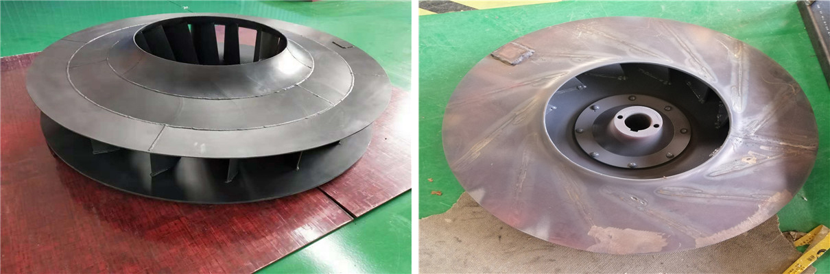 风机叶轮的腐蚀磨损主要是风机输送介质中含有腐蚀性的气体做引起的,由于输送介质不同,腐蚀磨损的程度也有所不同,为防止叶轮的腐蚀磨损,通常会选用防腐耐磨性能比较高的材质或者是在叶轮表面喷涂防护涂层,来增强叶轮表面的使用性能。